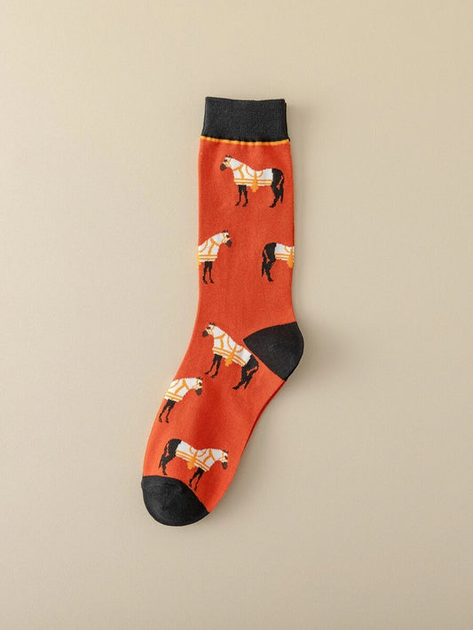 Burnt Orange Horse Pattern Crew Socks
