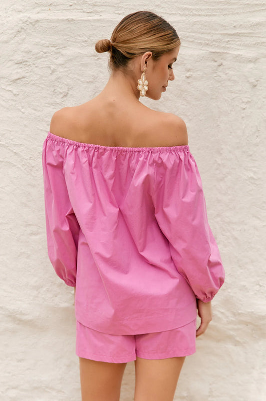 Kelsey Poplin Off Shoulder Top (PINK) - Size 16