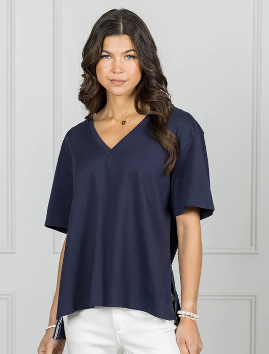 Jodie V Neck Tee - Navy