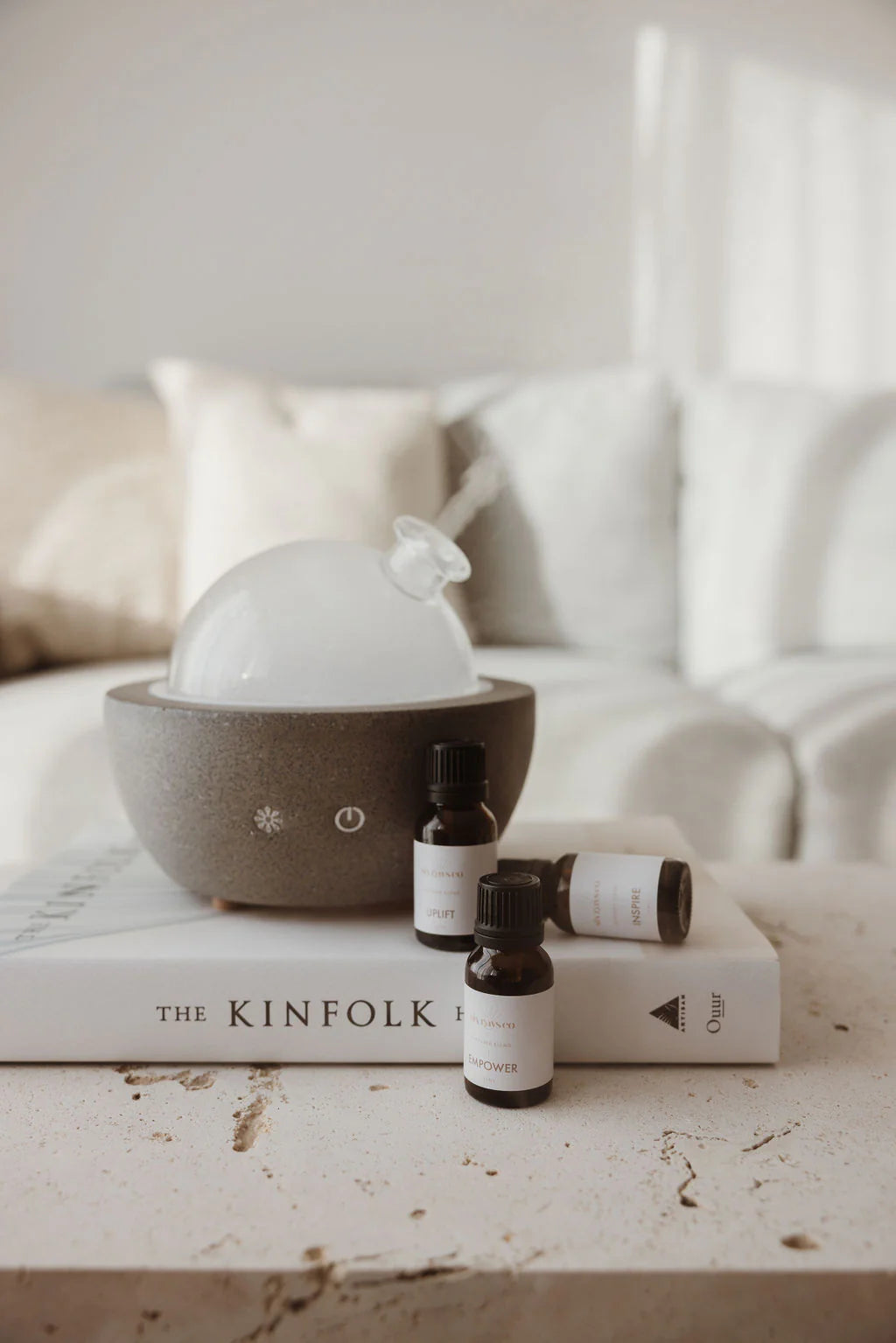 Crafted with a sleek combination of cement and glass, this diffuser effortlessly blends in with any interior decor. Simply add a few drops of your preferred essential oil to the 200ml water tank, and let the calming effects of aromatherapy envelop you.