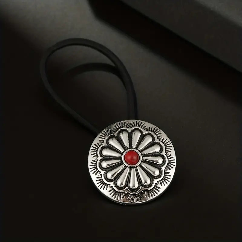 Create a western-inspired look in your hair with this beautiful turquoise-colored alloy hair ring! The retro-style rubber band provides strong and secure hold all day long. Be ready to wow your friends with this stunning hair accessory!